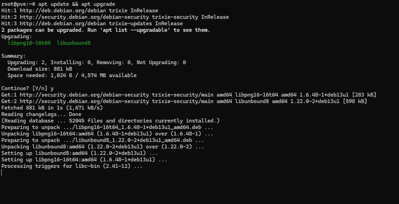 >> apt update && apt upgrade