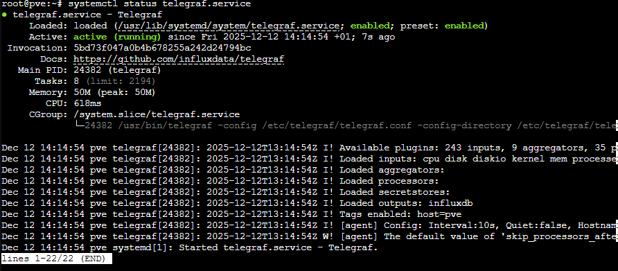 >>systemctl start telegraf