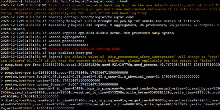 • Configurez telegraf pour envoyer les métriques vers InfluxDB :