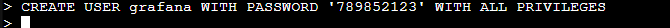 >>CREATE USER grafana WITH PASSWORD ‘motdepasse’ WITH ALL PRIVILEGES;